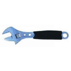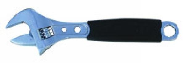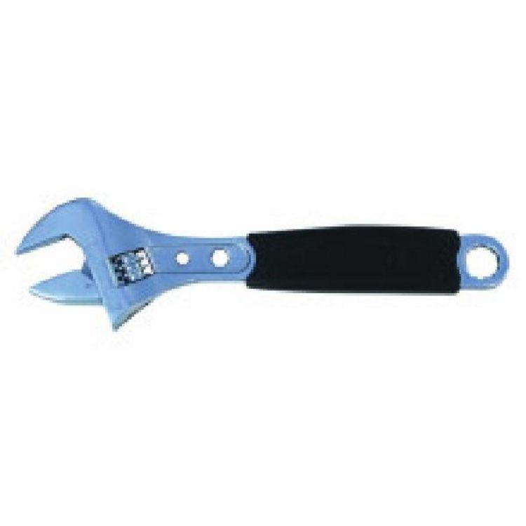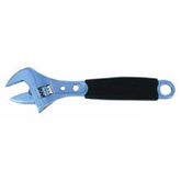 Clé à molette gainée. Longueur : 150 mm, ouverture : 19 mm.Chrome vanadium, chromée avec grip caoutchouc.Echelle graduée.