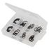 Assortiment d',environ 64 circlips extérieurs livrés en coffret à compartiments. Composition : 6 à 25 mm.