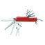 Corps acier avec côtés plastique. lames en acier inox. Couteau, scie, ciseaux,lime, tournevis, tire-bouchon, décapsuleur, ... 15 fonctions au total.Longueur : 90 mm