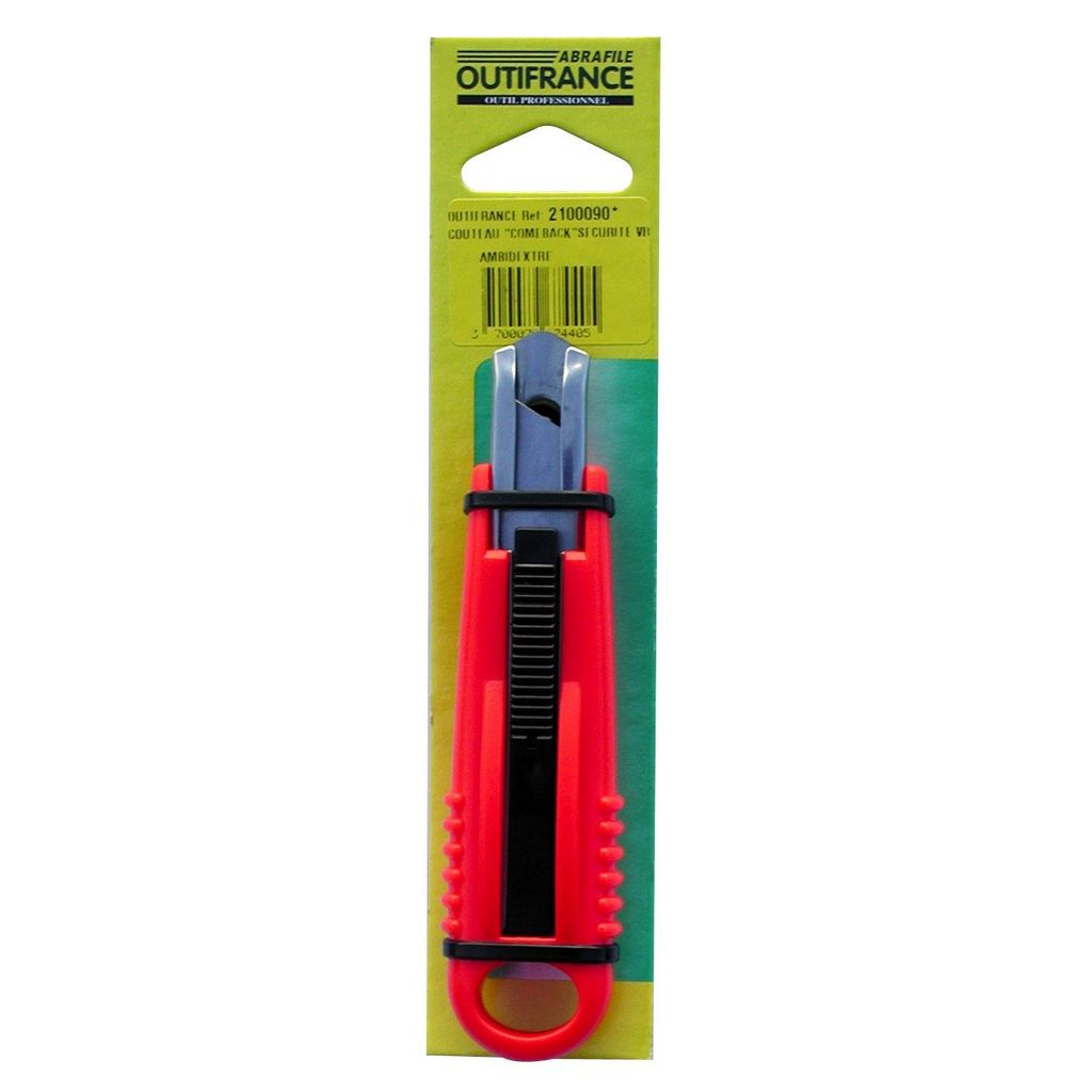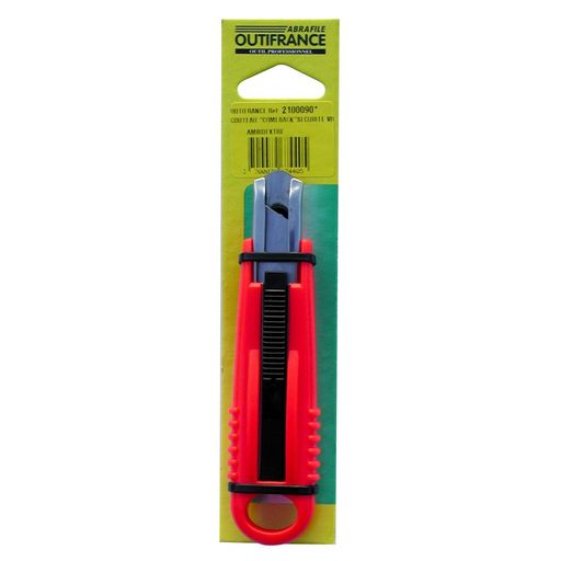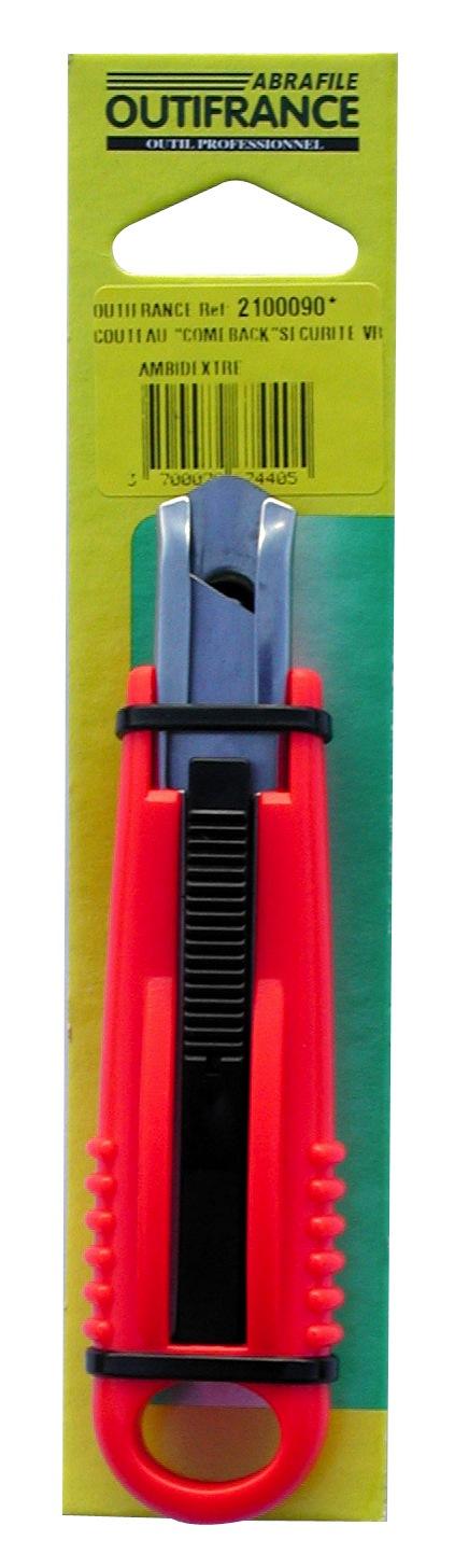 Couteau à retour automatique de la lame dès relâchement, évitant les risques de blessure par inattention.