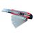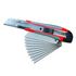Glissière en acier chromé. Bouton à blocage automatique. Corps bi-matière. Réservoir de lame dans le manche.