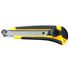 Corps en plastique avec grip confort antidérapant. Glissière renforcée en acier chromé. Bouton de blocage à molette pour une serrage de lame puissant. Casse lame intégré.Largeur : 18 mm