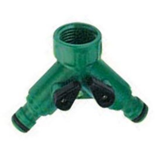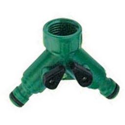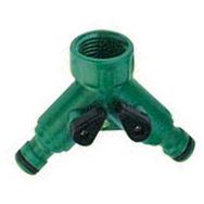 Nez de robinet pour 2 lignes d',irrigation avec vannes. Pour le montage ou la réparation d',une ligne d',irrigation en tuyau d',arrosage 15 et 19 mm.