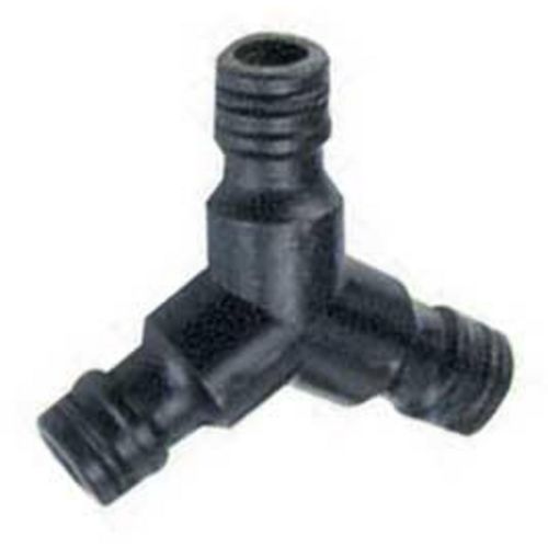 Dérivation avec 3 extrémités mâles (sans arrêt) pour le montage ou la réparation d',une ligne d',irrigation en tuyau d',arrosage 15 et 19 mm.