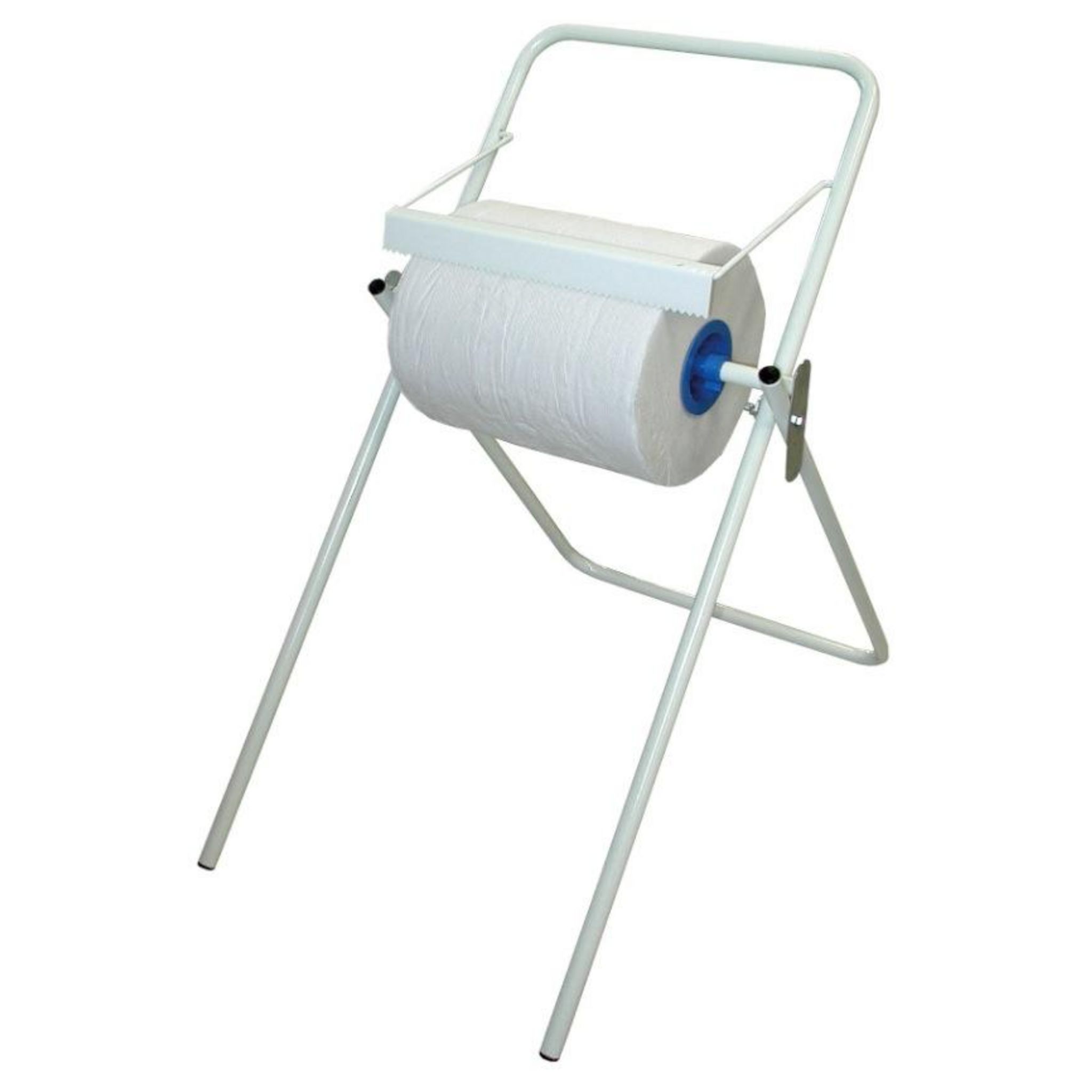 Dévidoir métallique pour bobine industrielle (au sol).