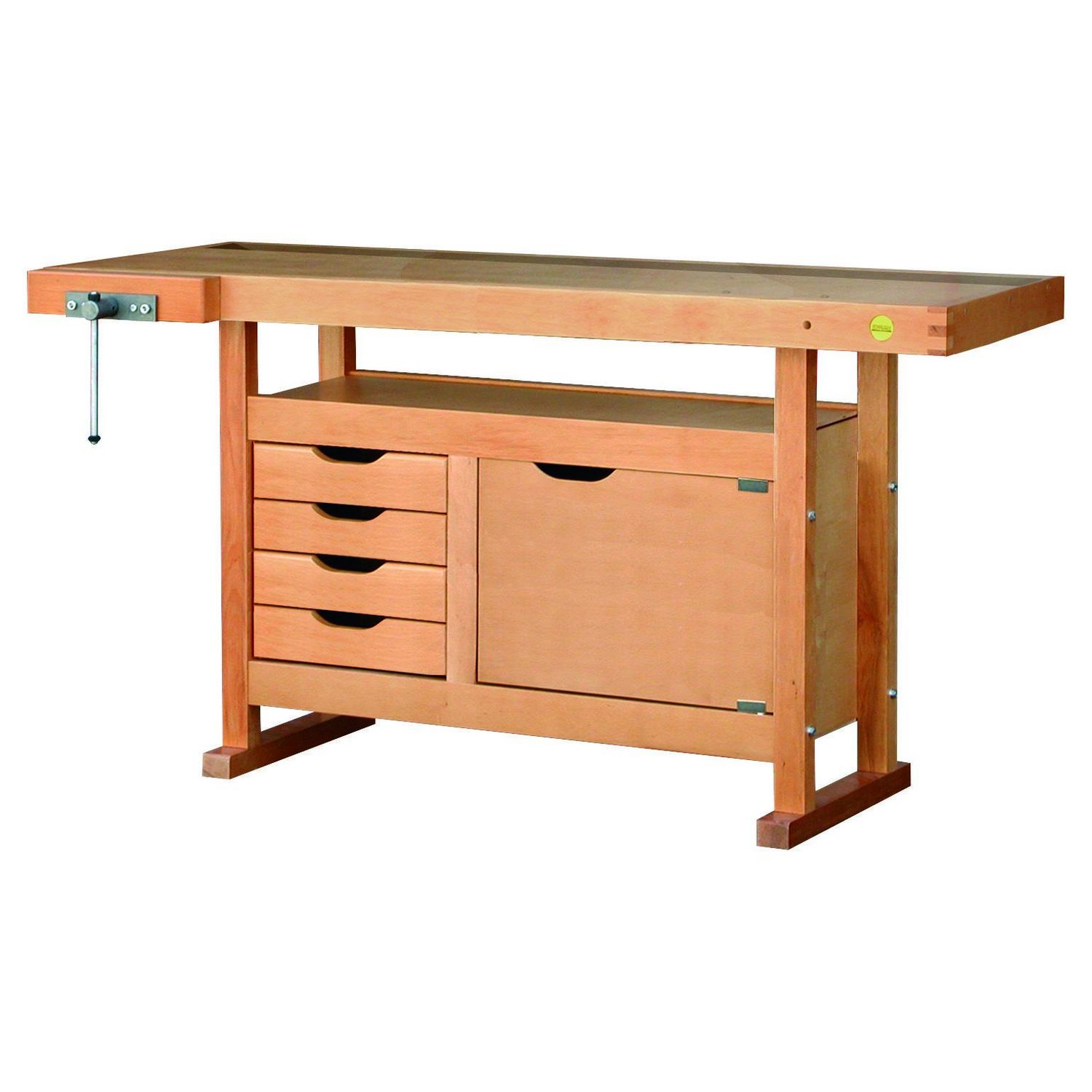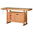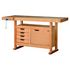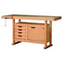 Plateau bois multiplis 25 mm avec ceinture bois massif 70 mm.Goulotte de rangement pour dégager rapidement l',espace de travail en gardant ses outils à portée de main.Bâti bois massif avec piètement section 50 x 40 mm à semelles.Caisson de rangement 75L composé de : (dimensions utiles)- 4 tiroirs