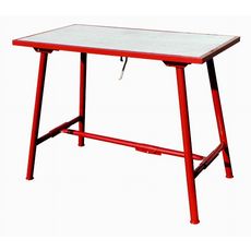 Etabli de monteur pliant professionnel. Plateau bois multiplis de 27 mm, cornières de renfort sur le pourtour. Piètement très stable. Tube diamètre 40 mm.