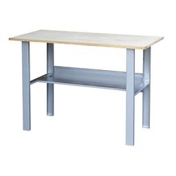 Plateau bois multiplis 18 mm.Bâti acier épaisseur 1 mm avec pieds profilé en U 60 x 30 mm.2 traverses de renfort dont une formant un rayon intermédiaire.Finition peinture époxy.Dimensions : 1.20 x 0.60 x h0.84 mPoids : 24 kg
