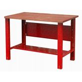 Etabli de mécanicien. Plateau bois multiplis de 27 mm. Pieds et traverses renforcés, plateau intermédiaire.