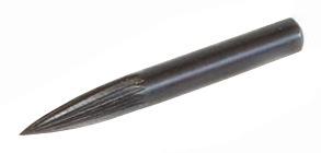 Fraise ogive pointue. Diamètre : 6 mm.Pour ajuster, décaper, décalaminer sur bois, métaux (sauf aciers spéciaux), matières plastiques (sauf lamifiés et plexiglas), caoutchouc dur, plâtre.