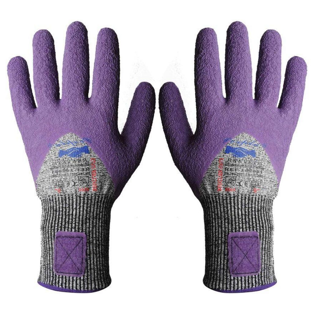 Pour la manipulation de tous les objets coupants à faible préhension : lames, verres, tôles d'acier, et tous matériaux tranchants. Structure en HDPE recouverte aux 3/4 de latex supergrip . Niveau maximum de résistance aux coupures exigé par la législation. Equipés du système d'accroche breveté perplu qui permet de fixer les gants ensembles pour les ranger facilement et ne plus en perdre un. Conformes aux normes CE EN 420 et EN 388. Indice de protection : 4544.