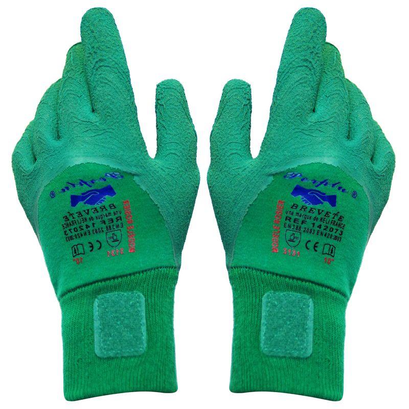 Gants adaptés à toutes les tâches du jardin, et plus particulièrement à la manipulation des épineux. En polycoton enduit 3/4 latex. Equipés du système d'accroche breveté perplu qui permet de fixer les gants ensembles pour les ranger facilement et ne plus en perdre un. Conformes aux normes CE EN 420 et EN 388. Indice de protection : 3131.