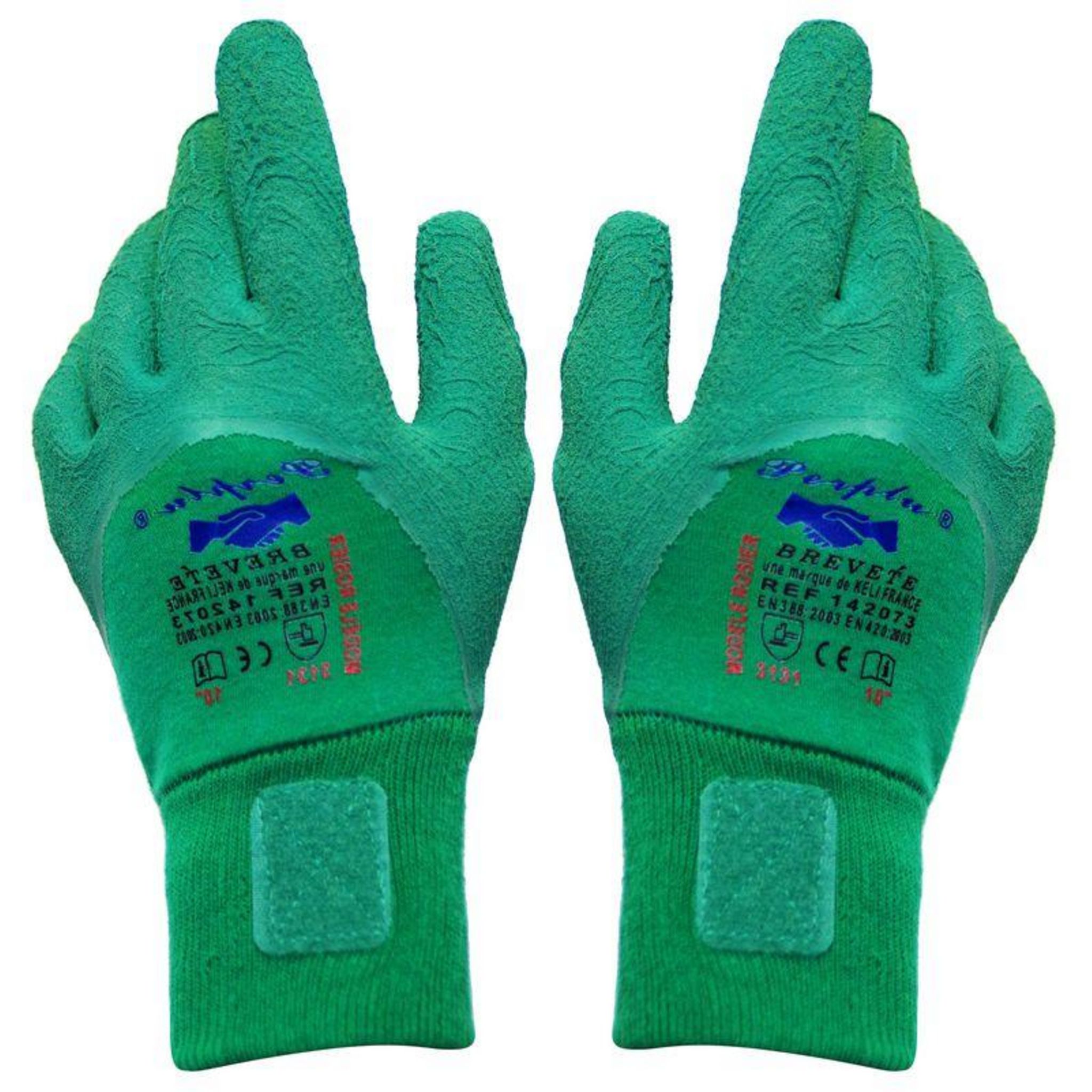 Gants rosier - Taille 10Gants adaptés à toutes les tâches du jardin, et plus particulièrement à la manipulation des épineux. En polycoton enduit 3/4 latex. Equipés du système d'accroche breveté perplu qui permet de fixer les gants ensembles pour les ranger facilement et ne plus en perdre un. Confo