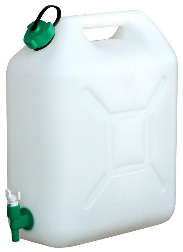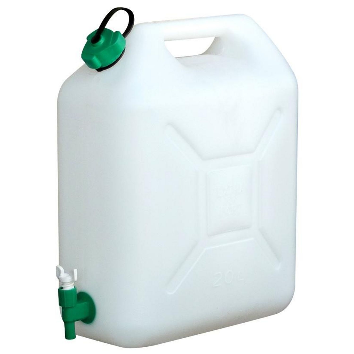 Avec bouchon à vis et robinet inférieur. Couleur : blanc. Volume : 20 L.