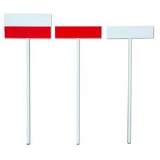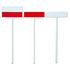 Jeu de 3 nivelettes métalliques composé d',une nivelette mère avec de 2 zones rectangulaires superposée, une blanche et l',autre rouge, une nivelette de visée avec une seule zone rouge ou blanche, et une nivelette baladeuse identique à la nivelette de visée mais de couleur opposée.