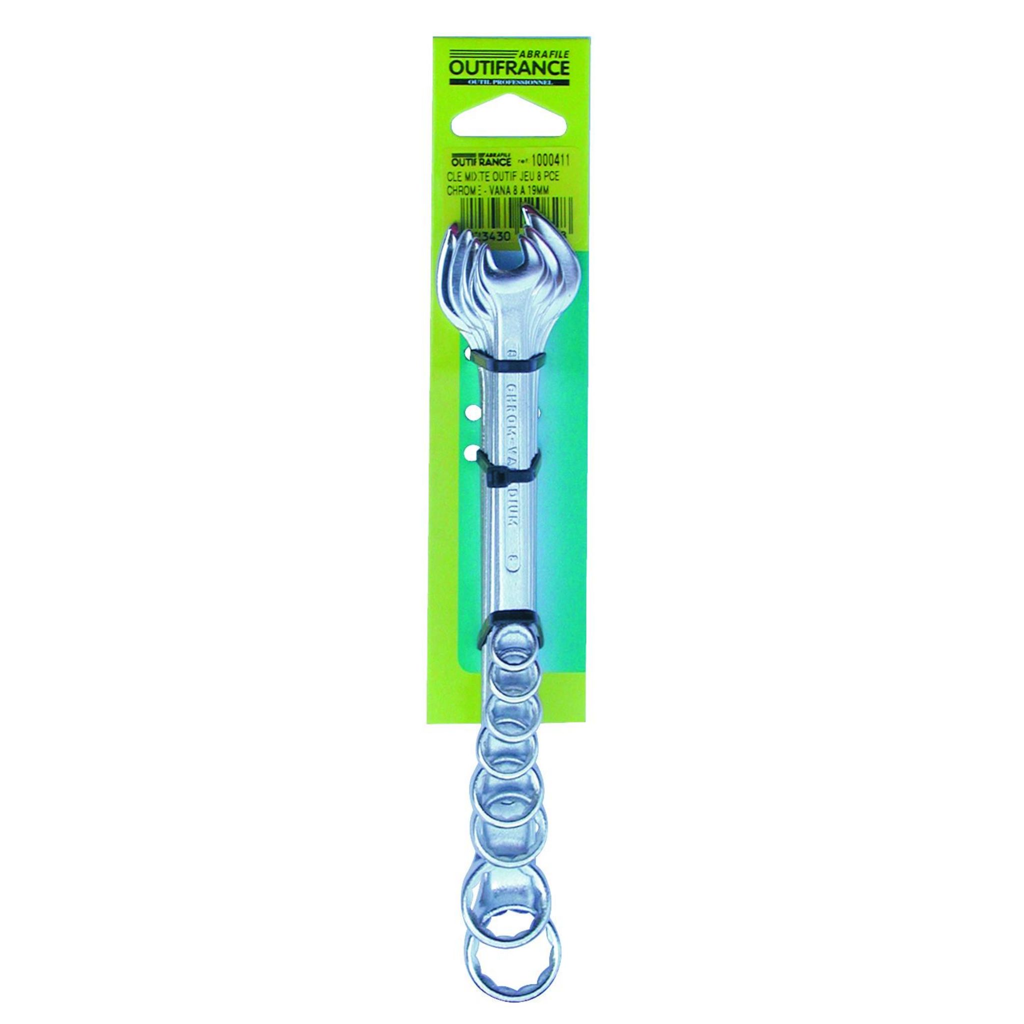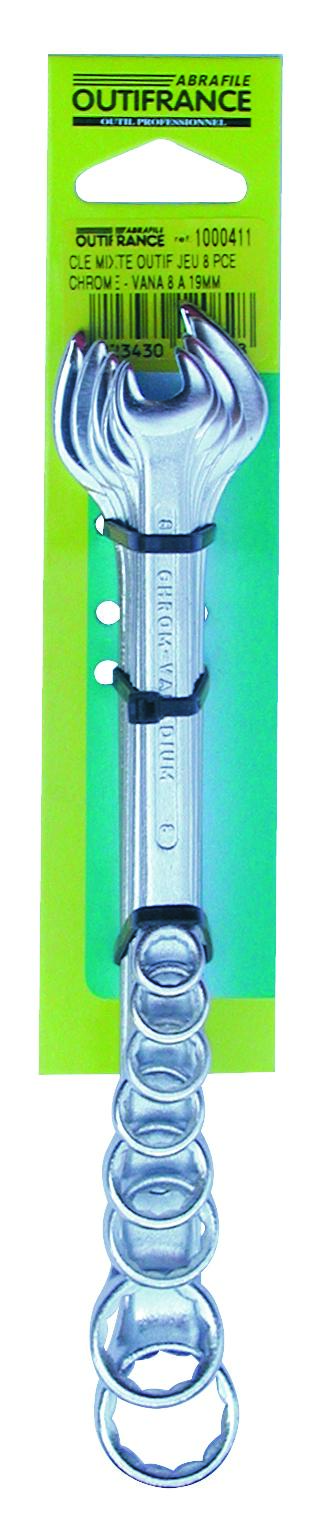 Jeu de 8 clés de 8 à 19 mm.