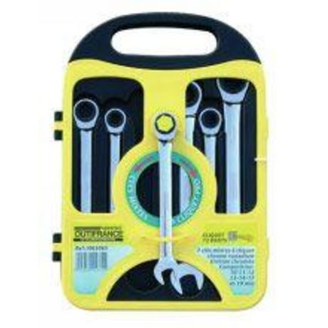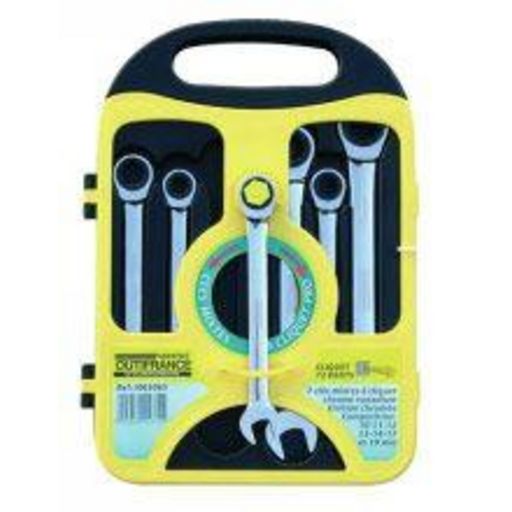 Jeu de clés mixtes à cliquet. Oeil à cliquet, chrome vanadium. 10 - 11 - 12 - 13 - 14 - 17 - 19 mm.