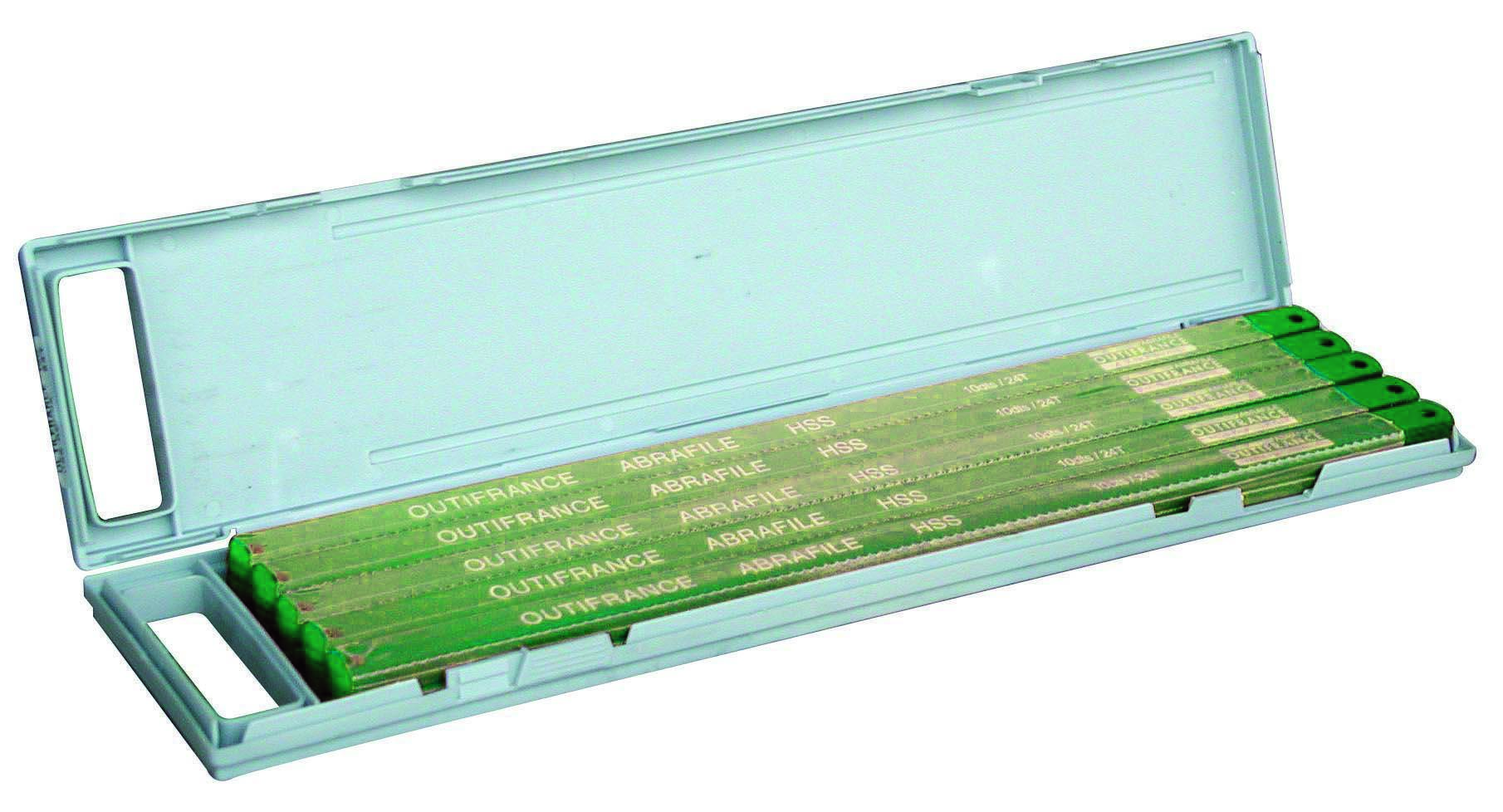 Pour la coupe de lacier doux, laluminium, le laiton, les métaux tendres.Longueur : 300 mm. Boîte de 100 lames.
