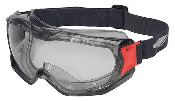 Masque de protectionMasque avec oculaire en polycarbonate transparent offrant une protection élevée contre les impacts, projectiles et liquides. Traitement antibuée FogLess pour une vision claire dans des conditions de travail extrêmes. Sangle élastique réglable et confortable. En option la coque
