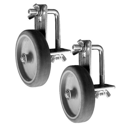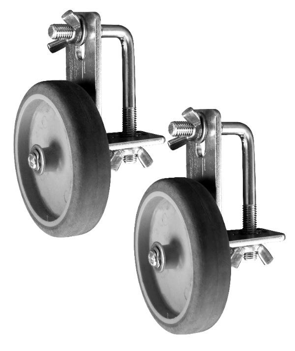 Paire de roulettes se fixant sur l&rsquo,extrémité des montants d&rsquo,une échelle, et permettant de :- Faire monter plus facilement une échelle à plusieurs plans en la laissant appuyée contre le mur.- Transporter sans effort une échelle en la tirant ou la poussant comme une brouette.Fixation par v