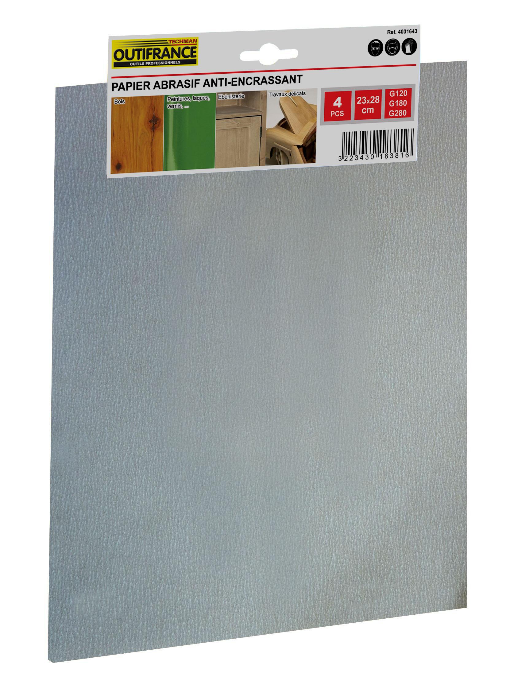 Pour travaux délicats et techniques sur les peintures, vernis, laques, bois et plastiques. Remplace le papier imperméable lorsque l',utilisation d',eau est proscrite. Constitué d',une double couche de résine qui assure l',excellente fixation des grains et remplit les interstices, ce qui