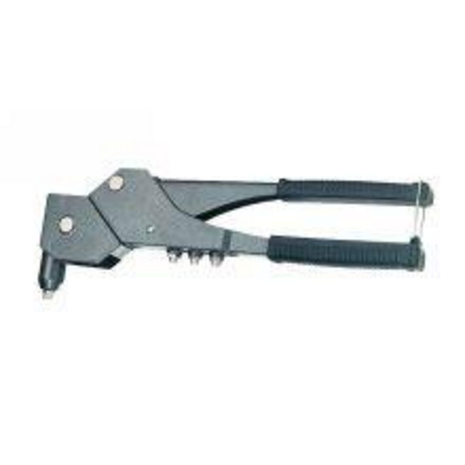 Pince à riveter Pro multi-positions. Corps en acier. Poignées gainées. La rotation de la tête à 360° permet la pose des rivets dans les endroits peu accessibles.