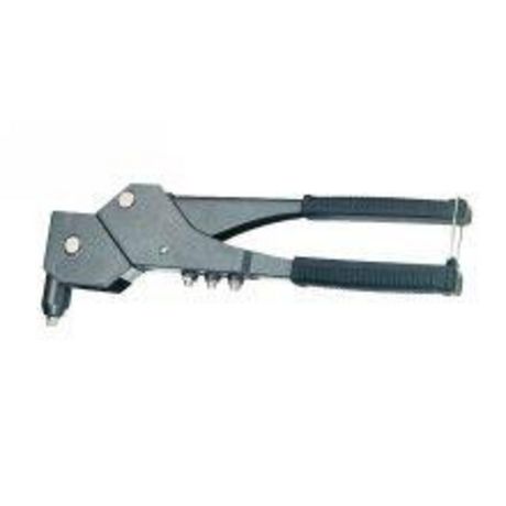 Pince à riveter Pro multi-positions. Corps en acier. Poignées gainées. La rotation de la tête à 360° permet la pose des rivets dans les endroits peu accessibles. Pour rivets : 2,4 / 3,5 / 4,0 / 4,8 mm.