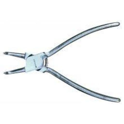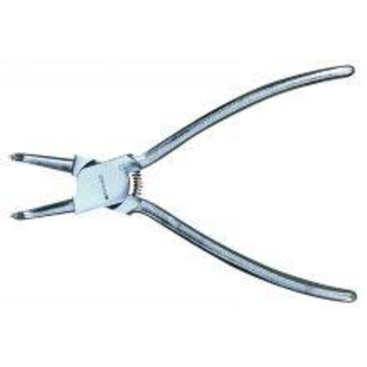 Pince circlips extérieure coudée. Pince chromée ouvrante. Becs usinés trempés.