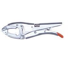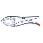 Pince-étau professionnelle. Ouverture à crémaillère, réglage de pression par molette, mors articulé.
