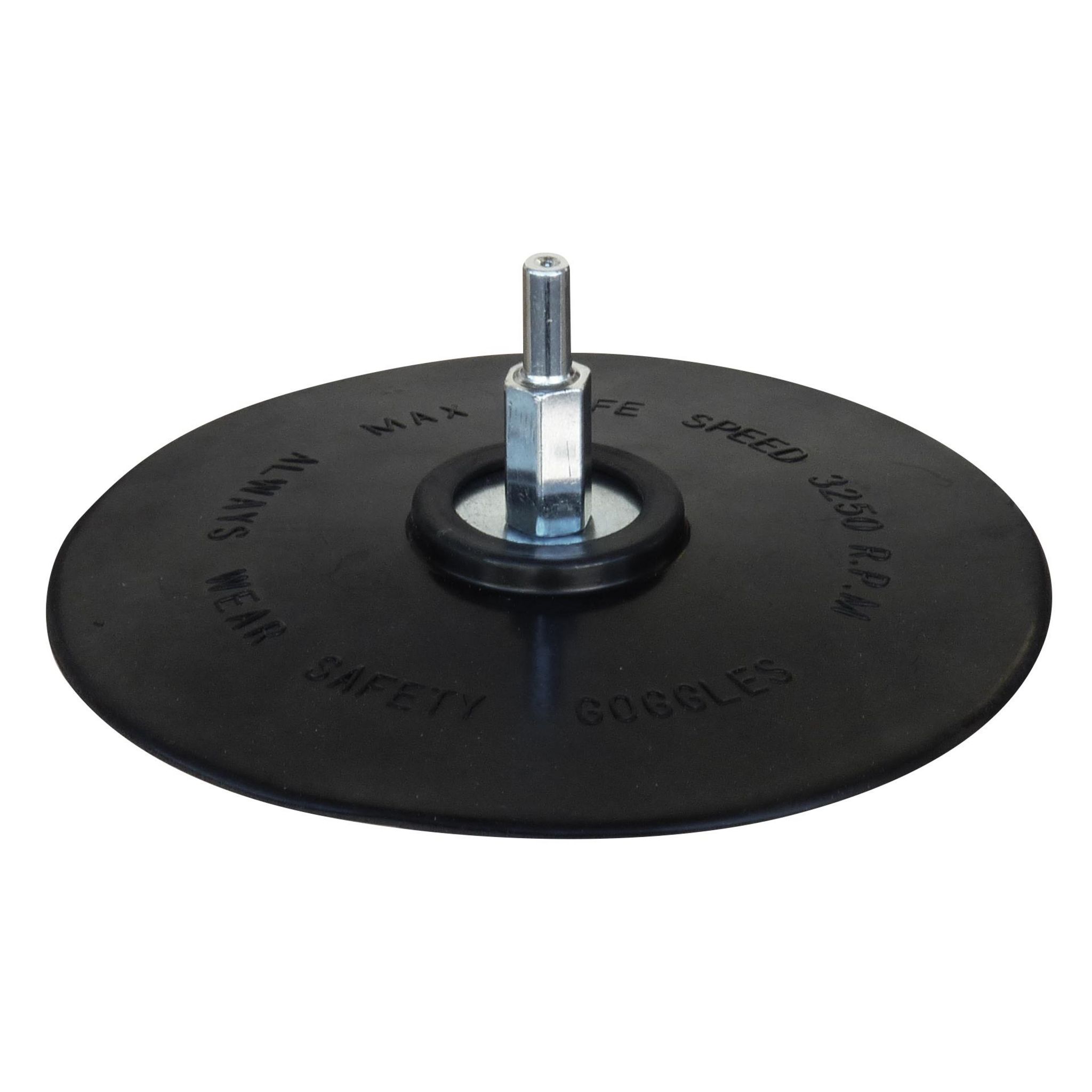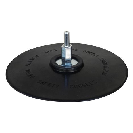 Plate de ponçage pour perceuse en caoutchouc rigide, avec tige de fixation pour les mandrins de perceuse. Utilisent des disques abrasifs à alésage central.Dimensions : pour disques de Ø, 150 mm