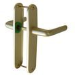 Poignée de porte champagne à bec de cane + condamnation clé.Poignées de porte pour ouverture à droite ou à gauche, livrées avec visserie.