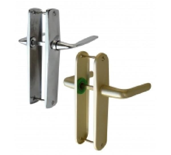 Poignées de porte chromées à bec de cane pour ouverture à droite ou à gauche, livrées avec visserie.