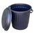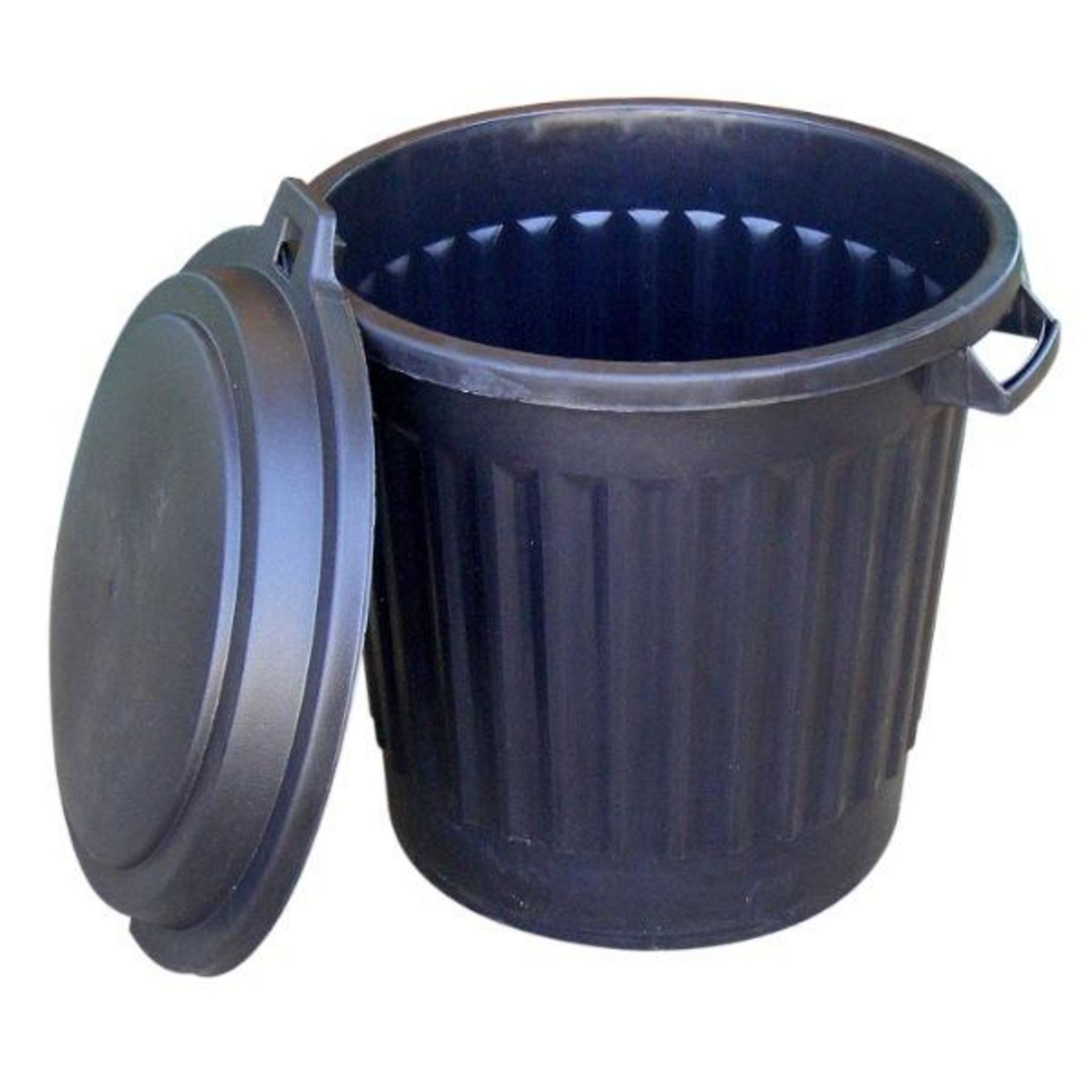 En polypro incassable, 2 poignées et couvercle avec système de verrouillage.Hauteur 600 mm, diamètre 570 mm. Pour sacs poubelle 100 L (non fournis).