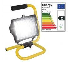 Projecteur halogène sur cadre. Projecteur 500 W avec grille de protection. Equipé d'un cadre avec poignée et vis papillon pour l'orientation. Fonctionne avec des ampoules de 300 W ou 500 W.