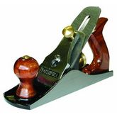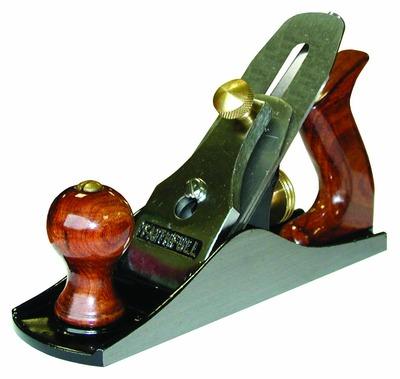 Corps en fonte avec poignées en bois verni. Semelle rectifiée sur 3 faces. Réglage de la lumière. Levier de gauchissement. Bloc d'arrêt à levier. Réglage de la profondeur du fer par vis. Livré en coffret bois.