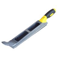 Corps en métal avec poignée bi-matière réversible pour une utilisation en râpe ou en rabot. Repose-paume sur l',avant pour une grande force de travail. Pour râper les bois, stratifiés, plaques et carreaux de plâtre.Permet de créer un chanfrein. Lame droite 250 mm.