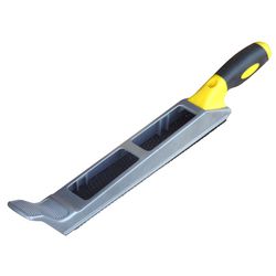 Corps en métal avec poignée bi-matière réversible pour une utilisation en râpe ou en rabot. Repose-paume sur l',avant pour une grande force de travail. Pour râper les bois, stratifiés, plaques et carreaux de plâtre.