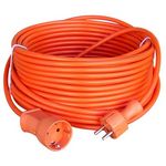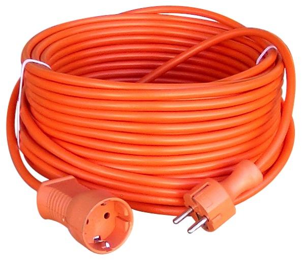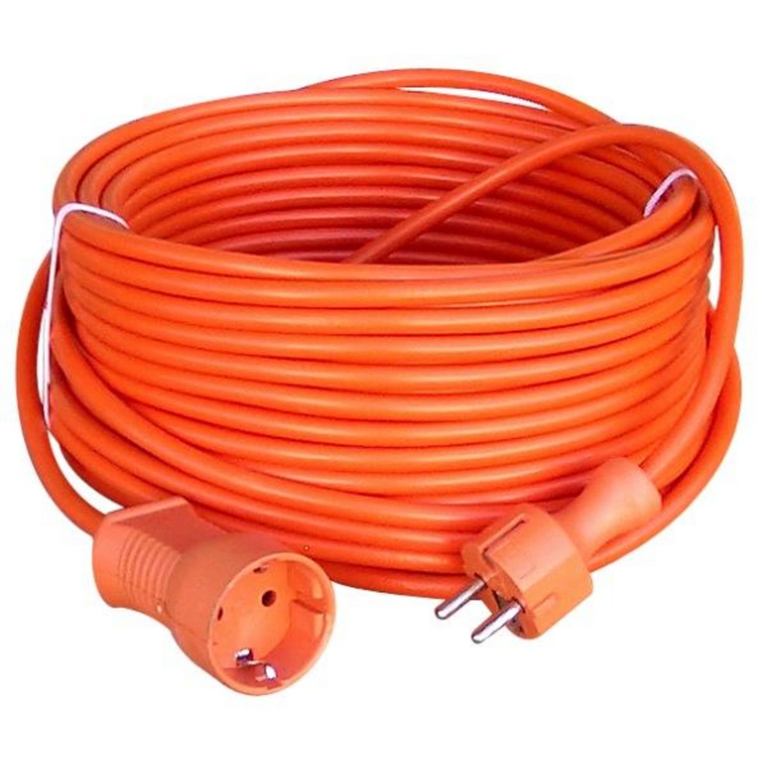 Rallonge électrique cylindrique orange, avec terre. Longueur : 25 m, câble : 3 x 1,5 mm2, intensité : 16 A.
