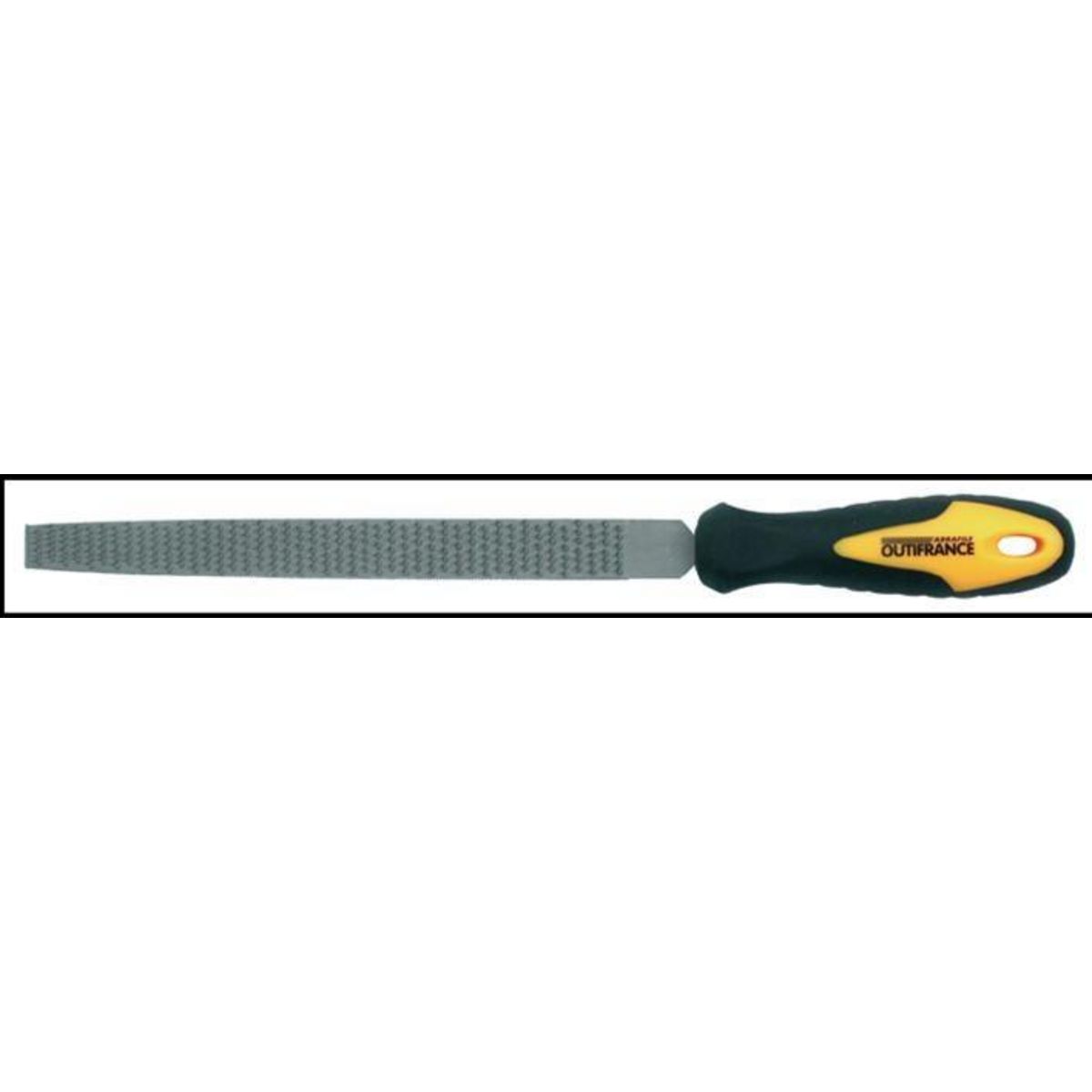 Râpe à bois plate. Manche bi-matière. Sur carte.
