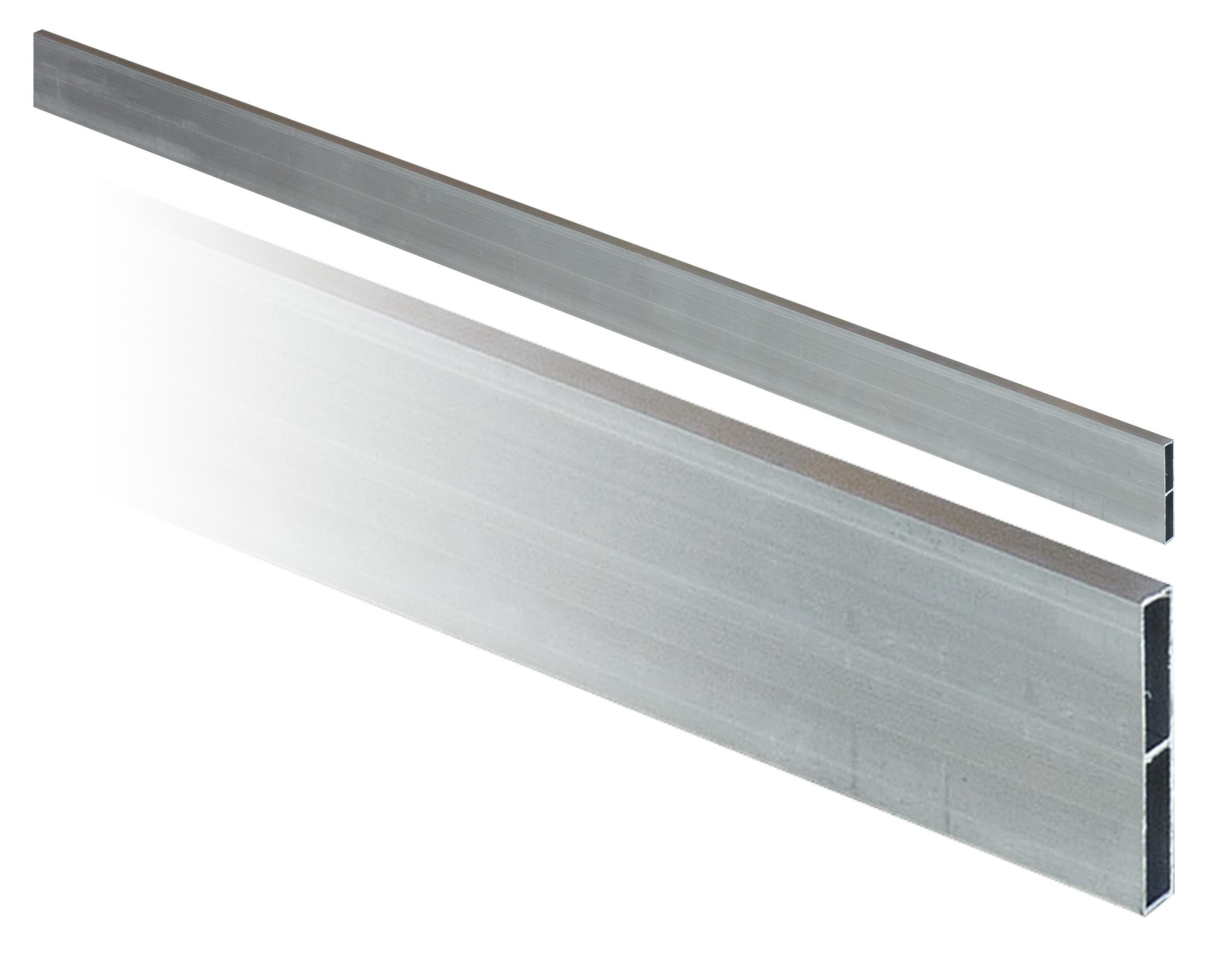En aluminium avec un renfort au centre. Section 100 X 18 mm. Embouts en plastique noirs livrés séparément.Longueur : 1.5 m