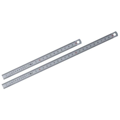 Réglets - acier mat flexible 13 mm 150 mmGraduation gravée recto et verso en 1/2 mm. Dizaines en rouge.