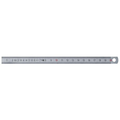Réglet en acier mat flexible. Graduation gravée recto et verso en 1/2 mm. Dizaines en rouge.Longueur : 300 mmLargeur : 13 mm