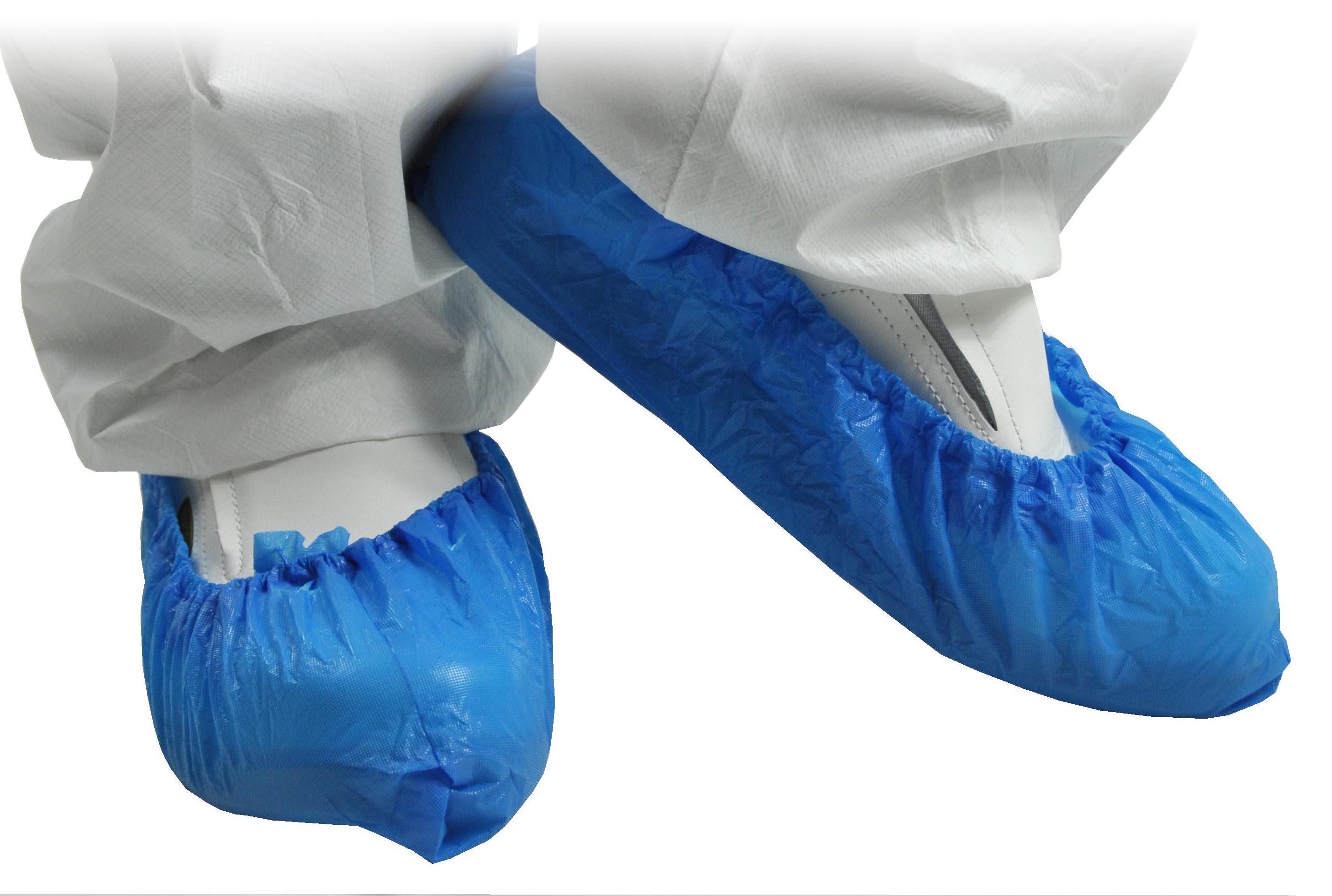 Sachet de 50 paires de couvre-chaussures en polyéthylène bleu, taille unique.