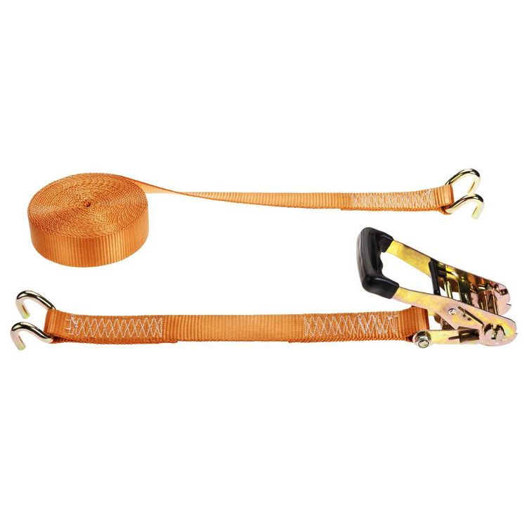 Sangles à crochets et cliquet acier bichromaté avec large poignée gainée caoutchouc pour une grande force de serrage. Conformes à la norme EN 12195/2.