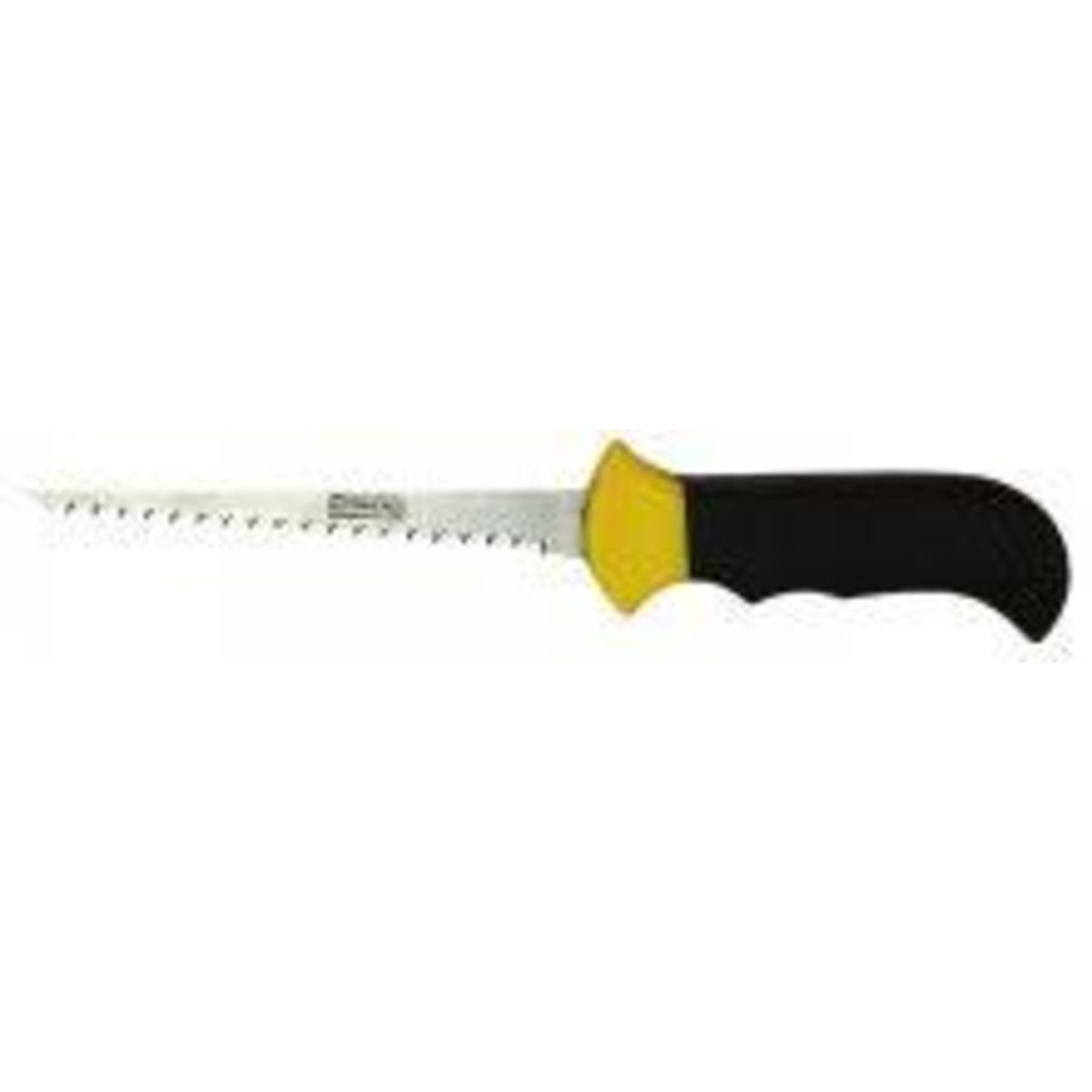 Scie à guichet poignée droite bi-matière. Denture trempée, double affûtage. Poignée bimatière. Idéale pour plaquistes et électriciens.