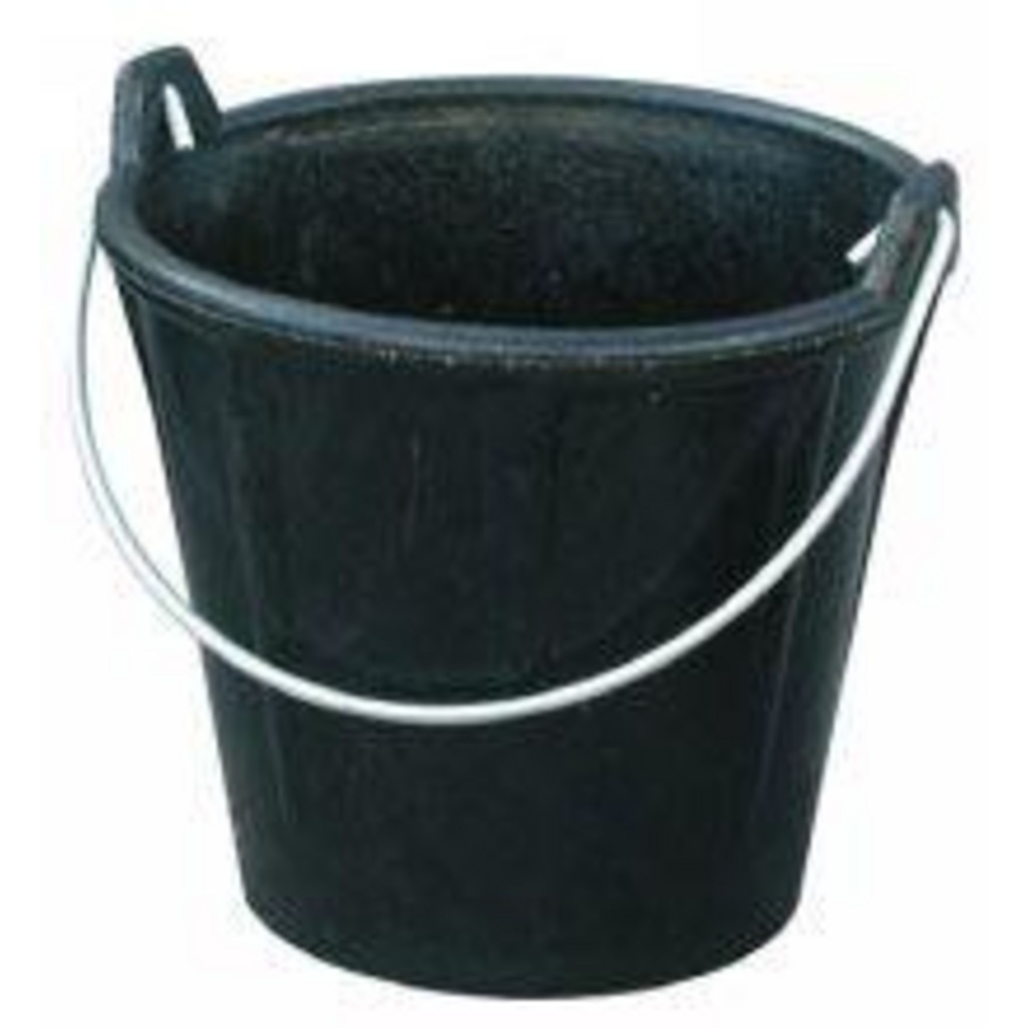 Seau de maçon professionnel. En caoutchouc, fond renforcé, anse métallique.
