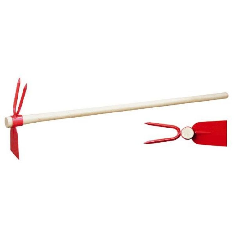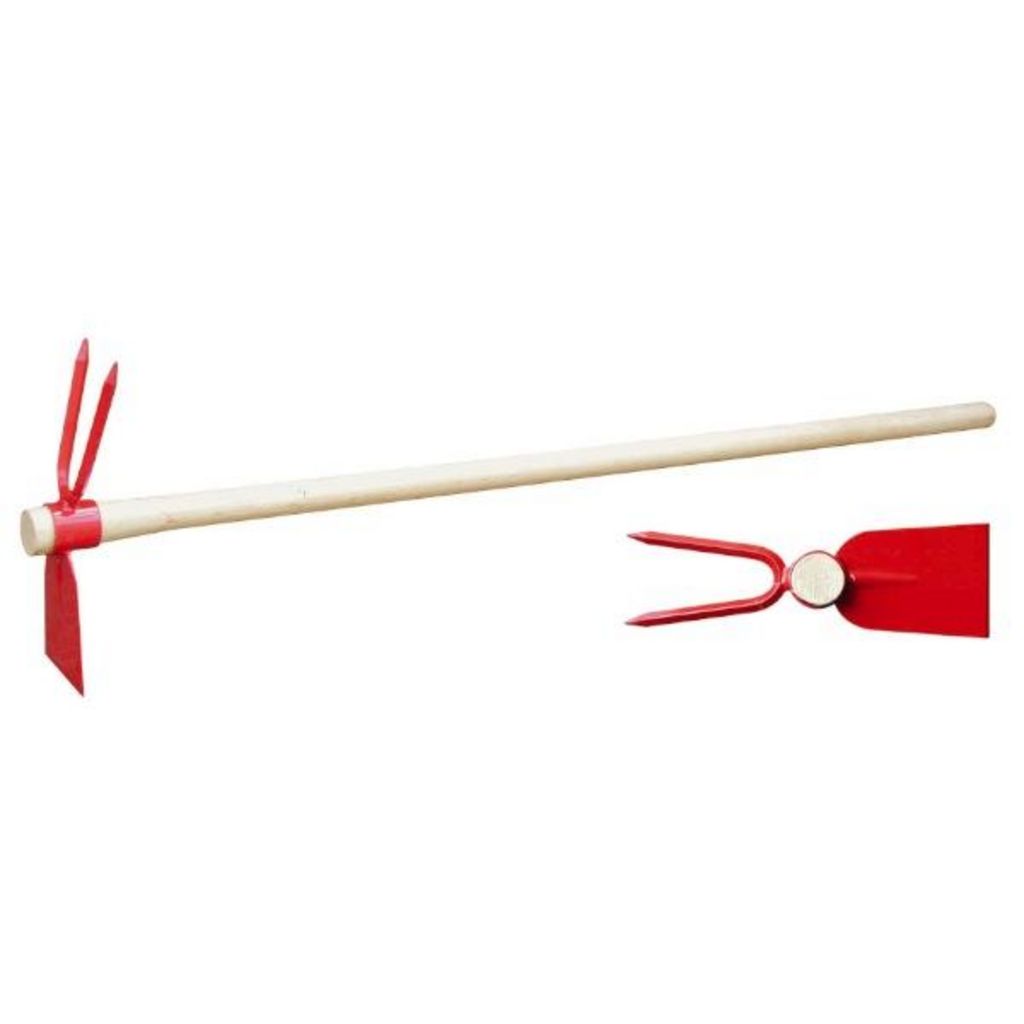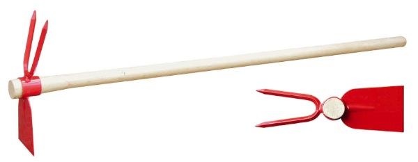 Panne et fourche - Manche bois : 1 mPour creuser dans le sol des sillons avant de semer, b^cher légèrement entre les plantes. En acier, finition laquée rouge. Livrée emmanchée.