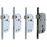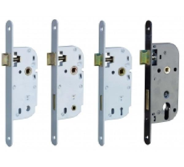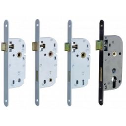 Serrures à larder avec pêne dormant réversible pour ouverture à droite ou à gauche, livrées avec gâches.