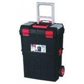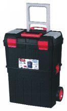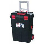 Servante. Composée de 2 grands coffres, 1 baladeur et 2 organiseurs sur le couvercle. Fermeture par cadenas possible. Poignée télescopique.