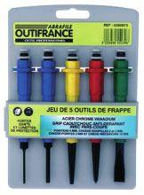 Stand de chasse-pointes chasse-goupilles. En acier chrome vanadium, gainé caoutchouc. Evidé. Longueur 125 mm.